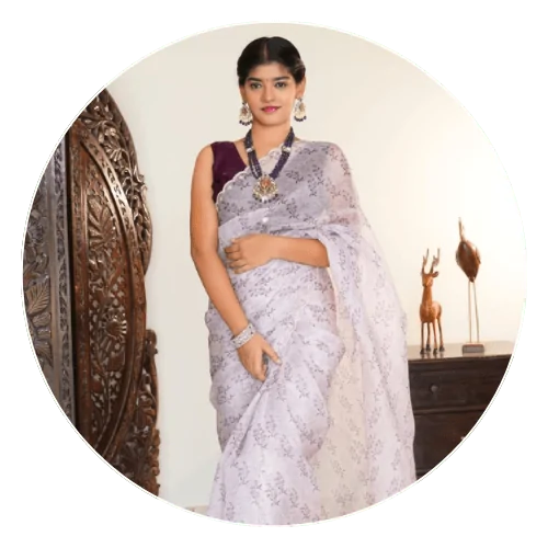 SARVAMANGALI Silk Studio is an exclusive saree brand that offers a curated collection of one-of-a-kind sarees, each piece meticulously crafted to embody divine beauty, premium quality, and a sense of royalty. Our collection showcases an array of exquisite sarees, including pure tussar, kanchipattu, ikat, ajrak, tissue, chiffon, organza, and bandani, among others. At SARVAMANGALI Silk Studio, every saree is a work of art, designed to make every woman feel auspicious and radiant on her special occasions.