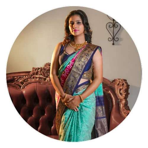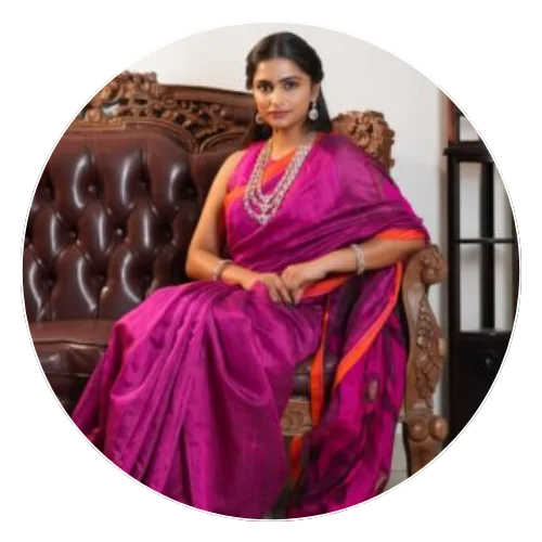 At SARVAMANGALI, we celebrate the highest quality of silk and exclusive designs. Our sarees come straight from the interiors and hidden streets of India, where the original gems of exquisite silk designs are created. Each saree carries the signature of Priya Rao’s taste for elegance and beauty, making them not just garments, but pieces of art.