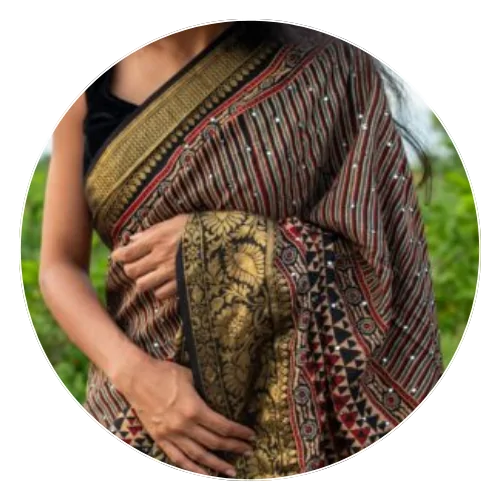 We honour the rich traditions of Indian textiles by working with skilled artisans who craft each saree with meticulous attention to detail and authenticity.