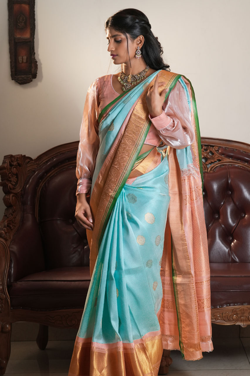 Elevate your style with our exquisite Gadwal Pattu Saree, a masterpiece that seamlessly blends tradition with contemporary elegance. This saree is adorned with delicate motifs on a vibrant body, complemented by a rich contrast pallu and Kanchi border. The perfect choice for weddings or grand festivities, this saree is sure to make a statement.