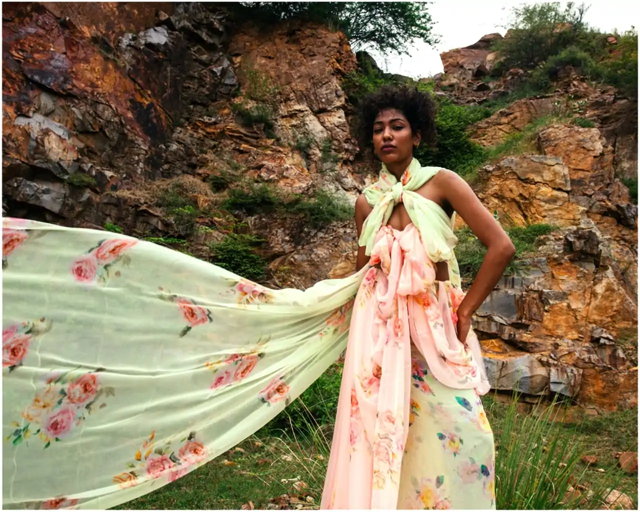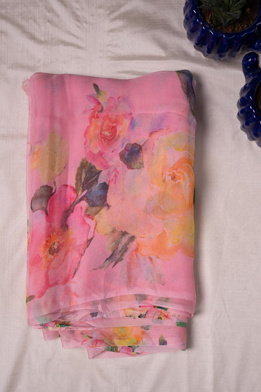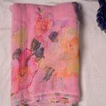 Embrace the charm of this Pure Chiffon Floral Print Saree in a lovely pink hue. The vibrant floral patterns combined with the graceful flow of chiffon make this saree an ideal choice for moments that call for elegance and beauty