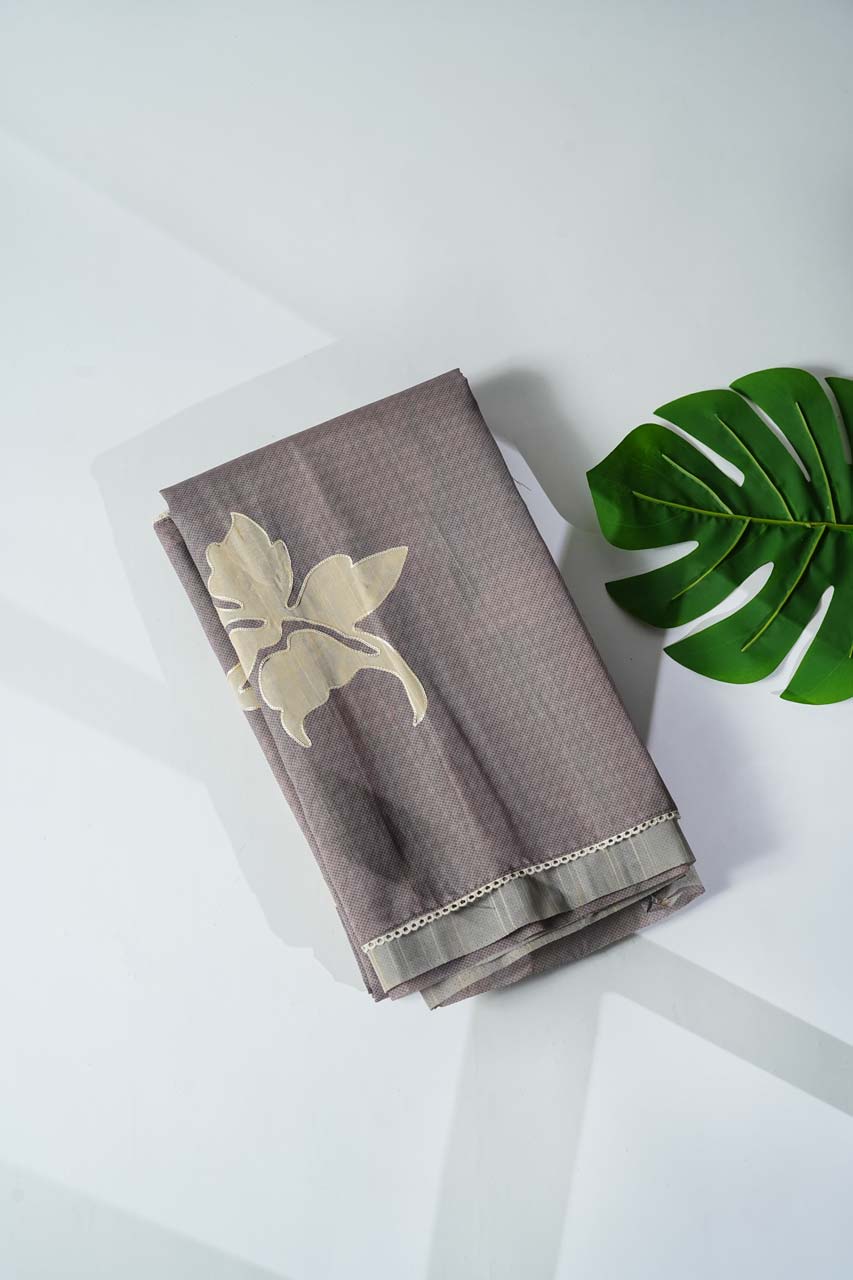 Tussar Saree with Appliqué Work and Kashida Outline