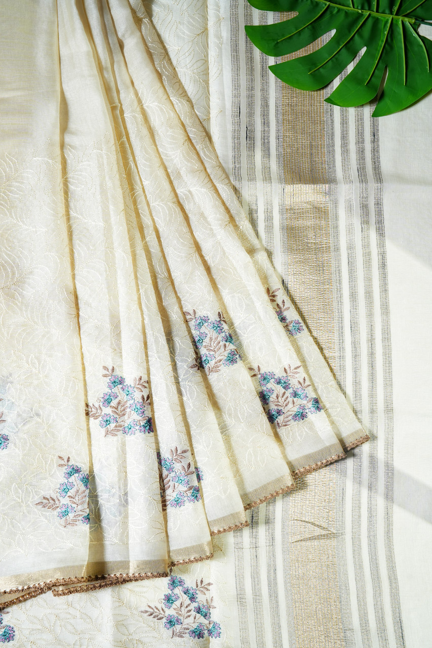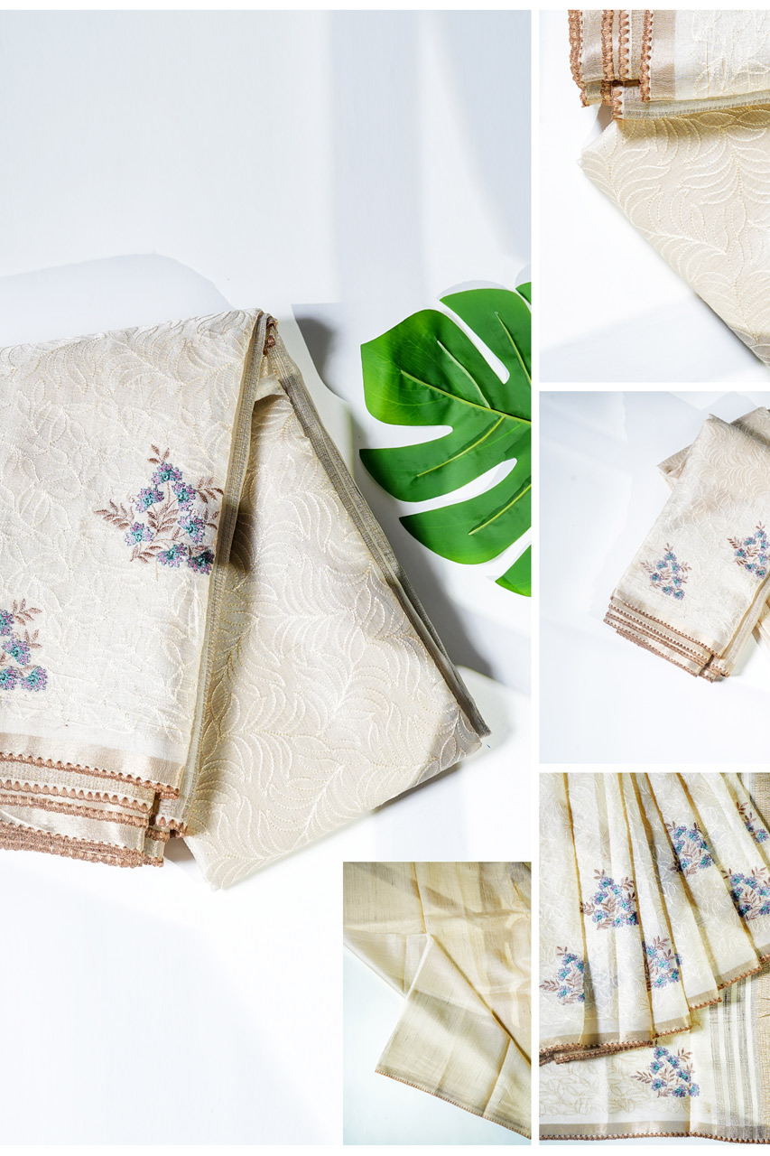 Saree Work: Chikankari Embossed Work with Embroidered Floral Motifs