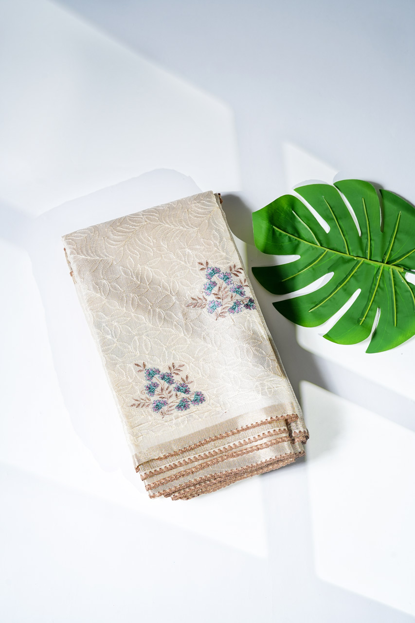 Tussar Saree with Chikankari Embossed Work and Floral Motifs