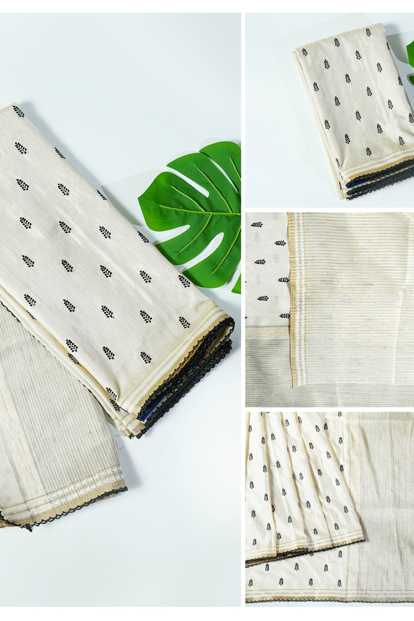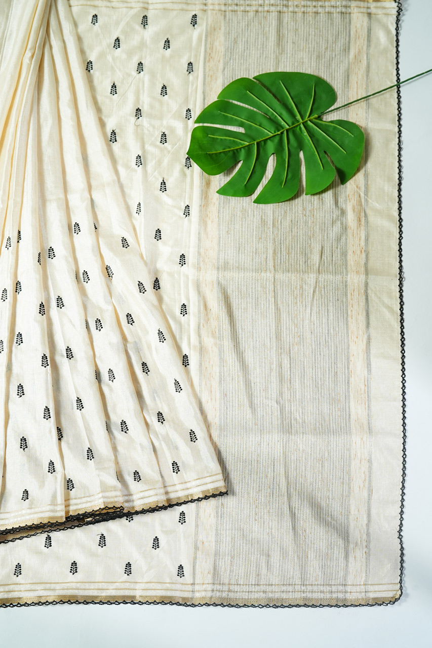 Tussar Saree with Kutch Work and Crochet Lace Border
